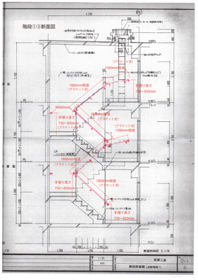 手すりの高さ・取付位置を決めた図面